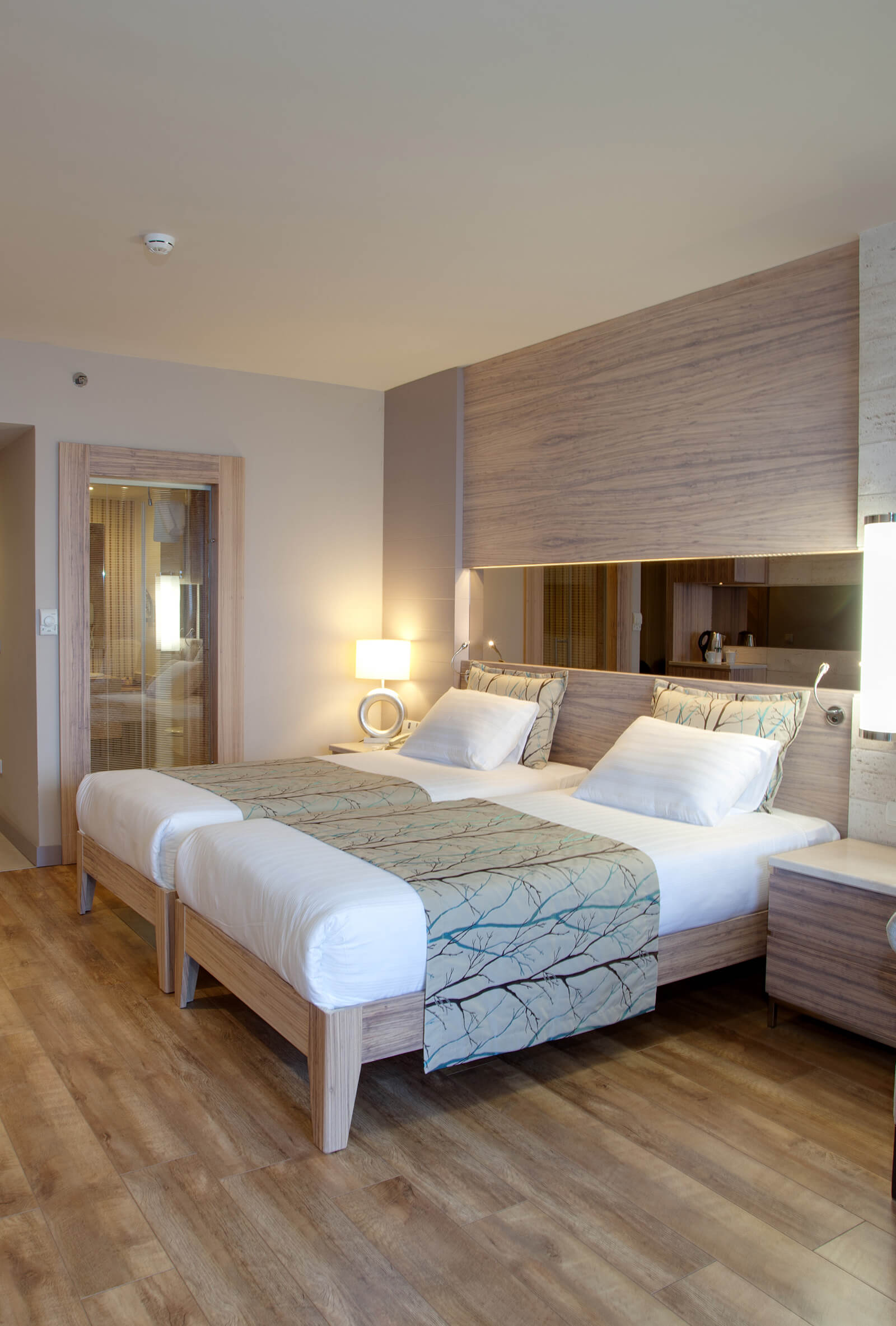 El Palacio de Cabárceno se compone de tres plantas, la primera con 6 suites para dos personas (12 personas) y la segunda con 4 suites para dos personas (8 personas), también tenemos una suite especial en planta baja preparada para personas con movilidad reducida (2 personas), siendo la capacidad total del Palacio 22 personas.